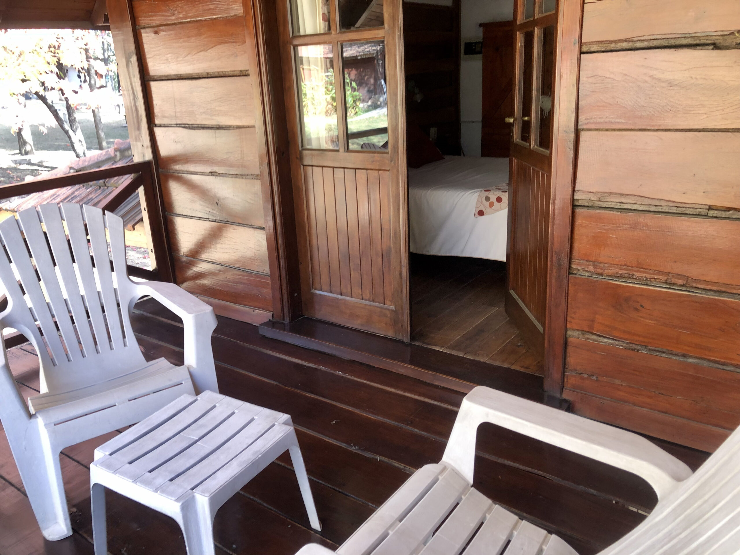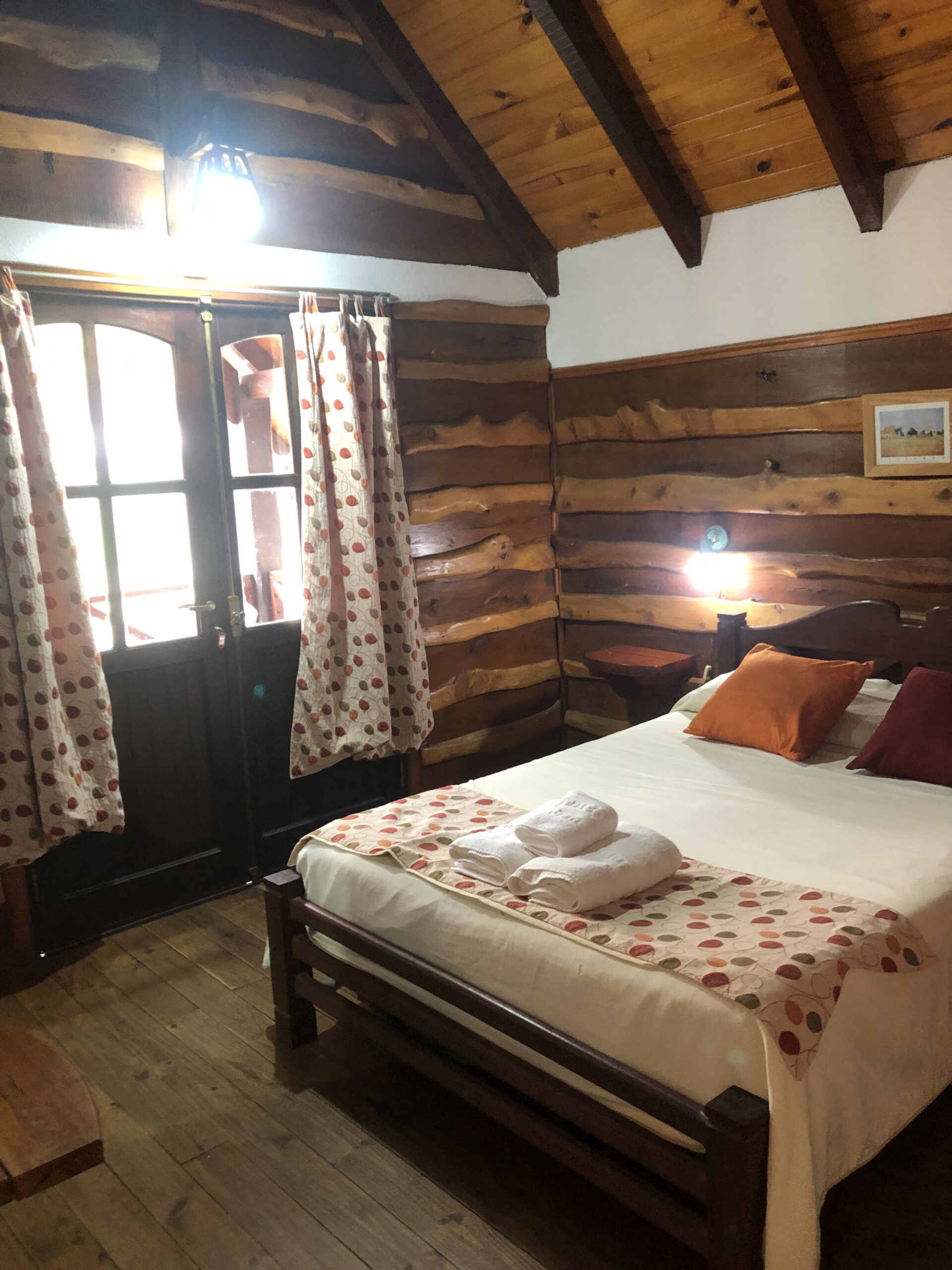 Una habitación matrimonial en planta alta, deck con vistas a las sierra.